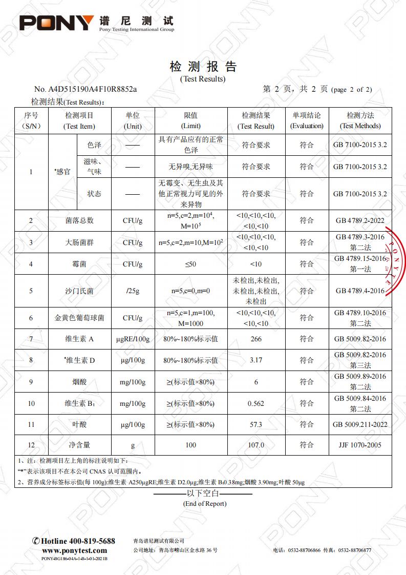 叶黄素酯爆浆糖(蓝莓味)检测报告