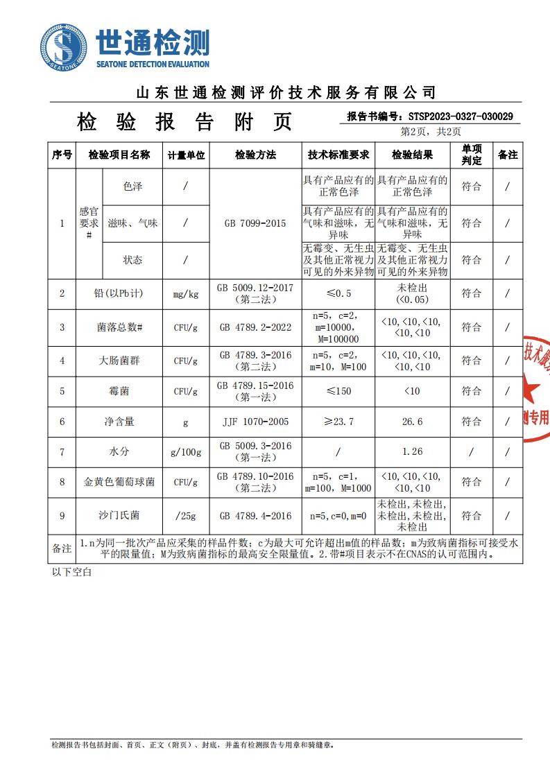 水果味梨汁米饼检测报告